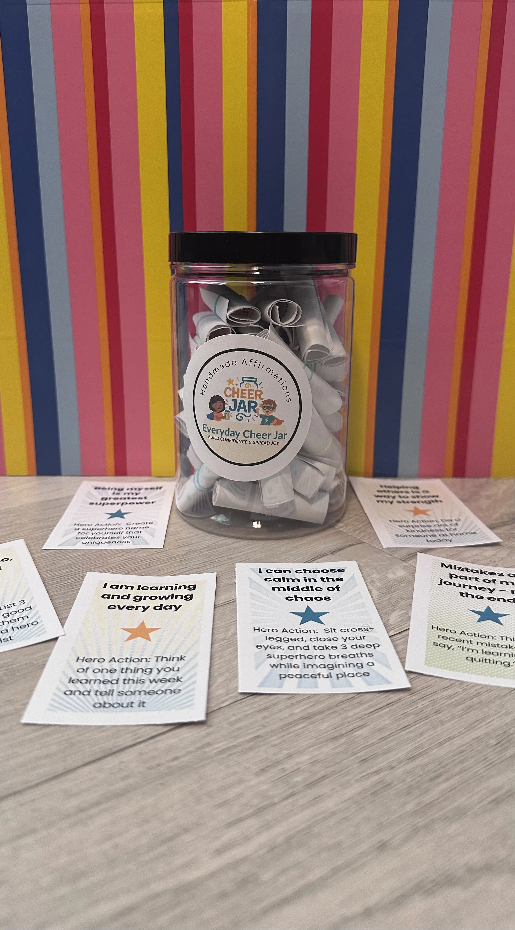 Our fun, superhero-themed affirmation jars and accessories are backed by science and designed to inspire confidence, kindness, and joy in children of all ages.